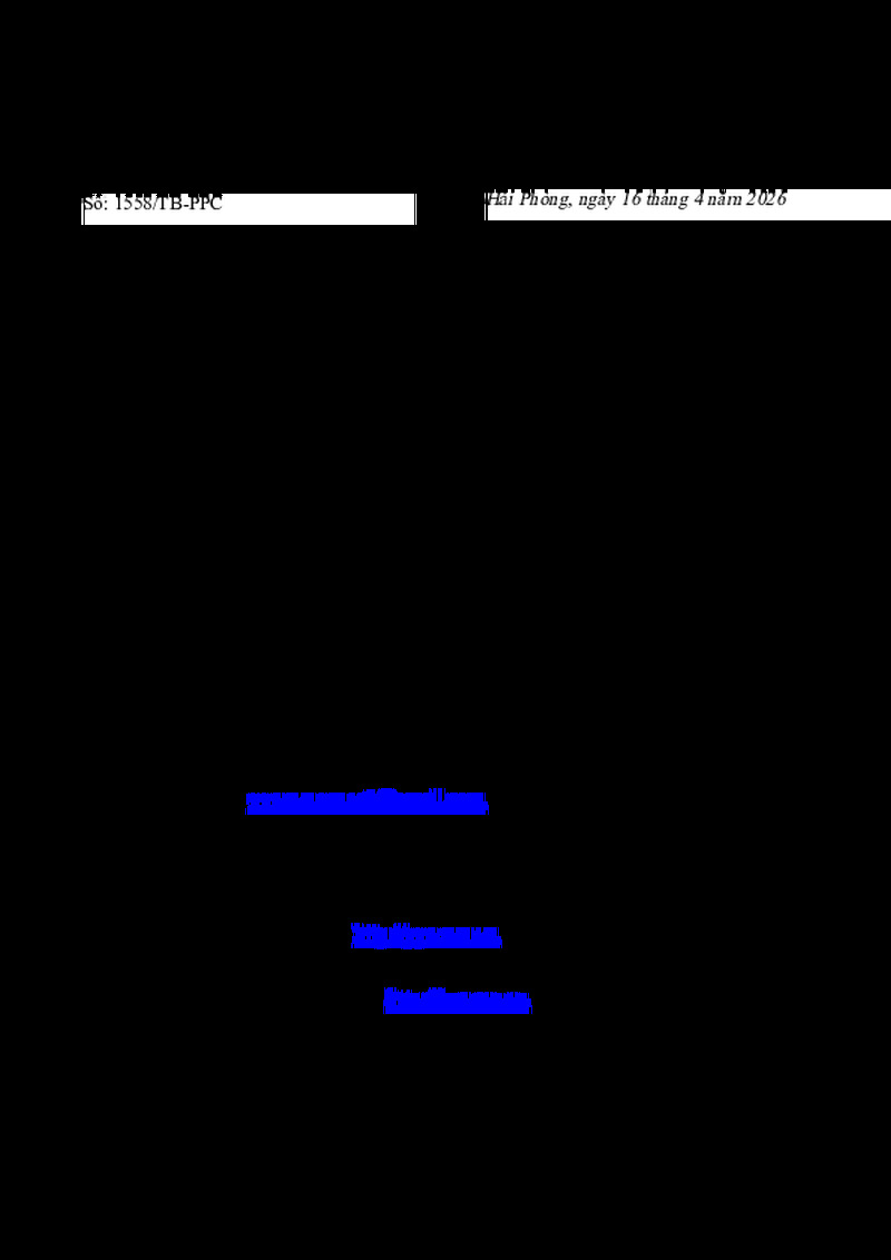 | Số hiệu | Số: 1558/TB-PPC | Cơ quan ban hành | --- |