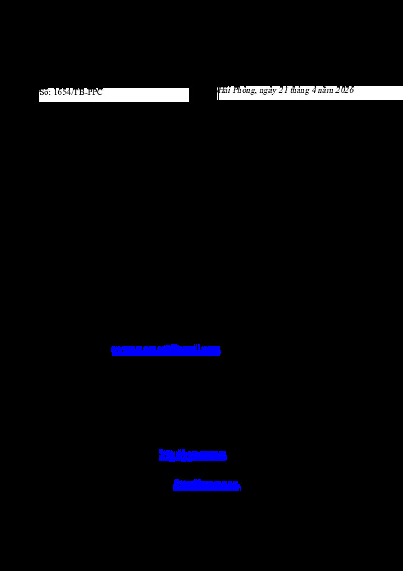 | Số hiệu | Số: 1654/TB-PPC | Cơ quan ban hành | --- |