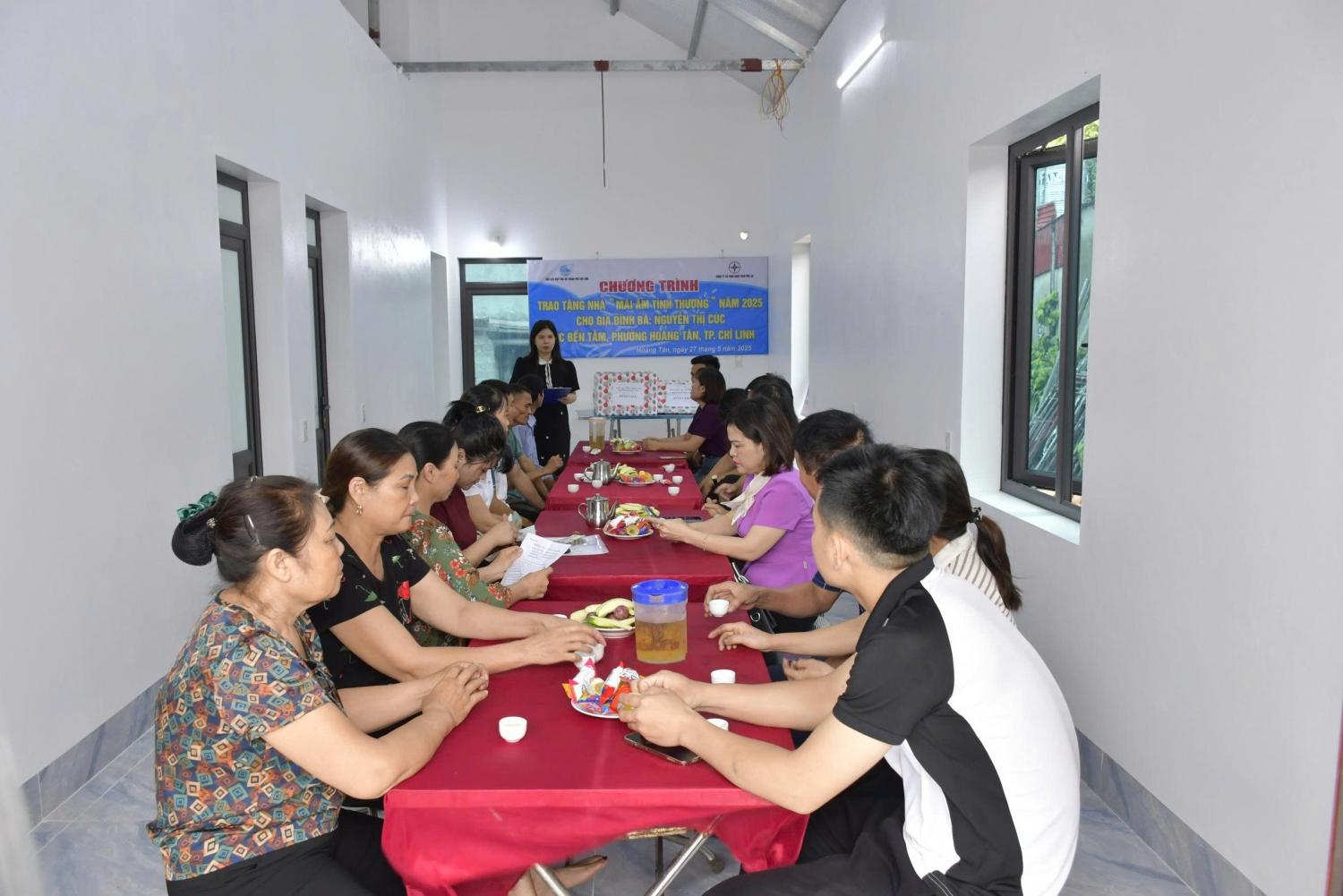 Chương trình trao hỗ trợ kinh phí xây nhà “Mái ấm tình thương” cho gia đình bà Nguyễn Thị CúcTham dự chương trình có ông Lê Văn Chính - Ủy viên Ban Thường vụ Đảng ủy, Chủ tịch Công đoàn Công ty cùng các cán bộ đại diện cho các tổ chức đoàn thể Công ty và phòng Hành chính Lao động.