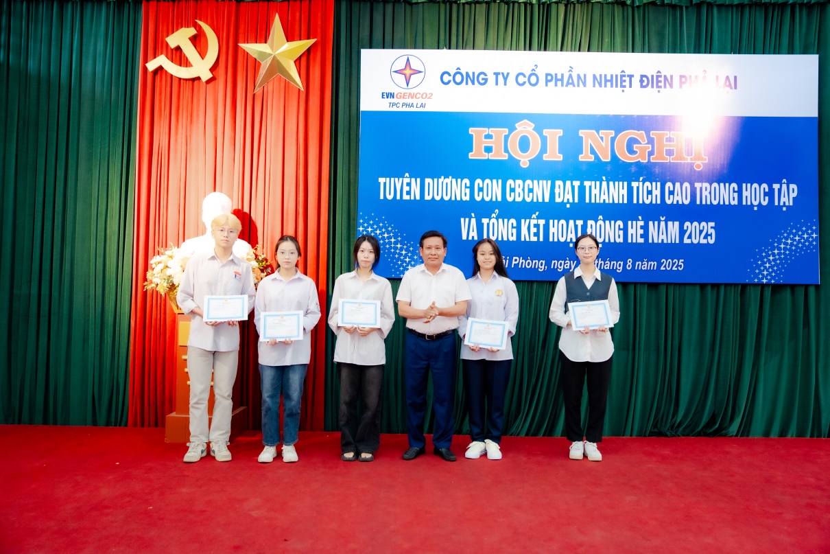 Ông Nguyễn Hoàng Hải - Tổng Giám đốc Công ty đã biểu dương và chúc mừng các cháu học sinh đạt thành tích xuất sắc trong năm học 2024-2025. Việc chăm lo cho thế hệ trẻ không chỉ là trách nhiệm mà còn là bổn phận thiêng liêng của mỗi quốc gia, mỗi dân tộc. Trong nhiều năm qua, tại Công ty Cổ phần Nhiệt điện Phả Lại, công tác chăm sóc trẻ em, khuyến khích phong trào học tập, phấn đấu trở thành con ngoan trò giỏi của con CBCNV đã được Ban lãnh đạo Công ty luôn quan tâm, tạo điều kiện. Lãnh đạo chuyên môn Công ty Cổ phần Nhiệt điện Phả Lại đã phối hợp cùng với Công đoàn, Đoàn thanh niên Công ty tổ chức nhiều hoạt động để quan tâm, chăm lo cho con CBCNV Công ty như: tặng quà nhân dịp Ngày quốc tế thiếu nhi 1/6, Tết Trung thu; khen thưởng cho các cháu đạt thành tích cao trong học tập; thăm hỏi, tặng quà cho con CBCNV Công ty mắc bệnh hiểm nghèo, hoàn cảnh khó khăn… Tổng Giám đốc biểu dương Đoàn thanh niên Công ty đã tổ chức một sân chơi bổ ích và an toàn cho các cháu thiếu niên, nhi đồng trên địa bàn trong dịp hè 2025. Ông cũng bày tỏ niềm tự hào với thành tích mà con CBCNV đã đạt được, đồng thời cũng hy vọng các cháu học sinh sẽ tiếp tục nỗ lực nhiều hơn nữa để đạt thành tích cao trong học tập, luôn xứng đáng là con ngoan, trò giỏi, cháu ngoan Bác Hồ. Thay mặt cho Ban lãnh đạo Công ty, ông gửi cảm ơn đến Hội khuyến học, các nhà trường và các thầy cô giáo đã luôn đồng hành, quan tâm, tận tình dìu dắt các cháu trong học tập và rèn luyện.