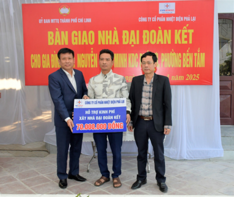 Đại diện lãnh đạo PPC, Ủy ban Mặt trận Tổ quốc thành phố Chí Linh và chính quyền địa phương tham quan ngôi nhà mới của gia đình ông Nguyễn Ngọc Minh.Trong năm 2024, Công ty cổ phần Nhiệt điện Phả Lại đã trao tặng 04 ngôi nhà cho hộ nghèo. Năm 2025, Công ty tiếp tục đồng hành cùng địa phương xây dựng những ngôi nhà mới cho hộ nghèo, góp phần cùng với các cấp chính quyền địa phương thực hiện tốt công tác an sinh xã hội./.