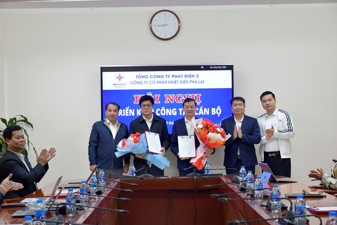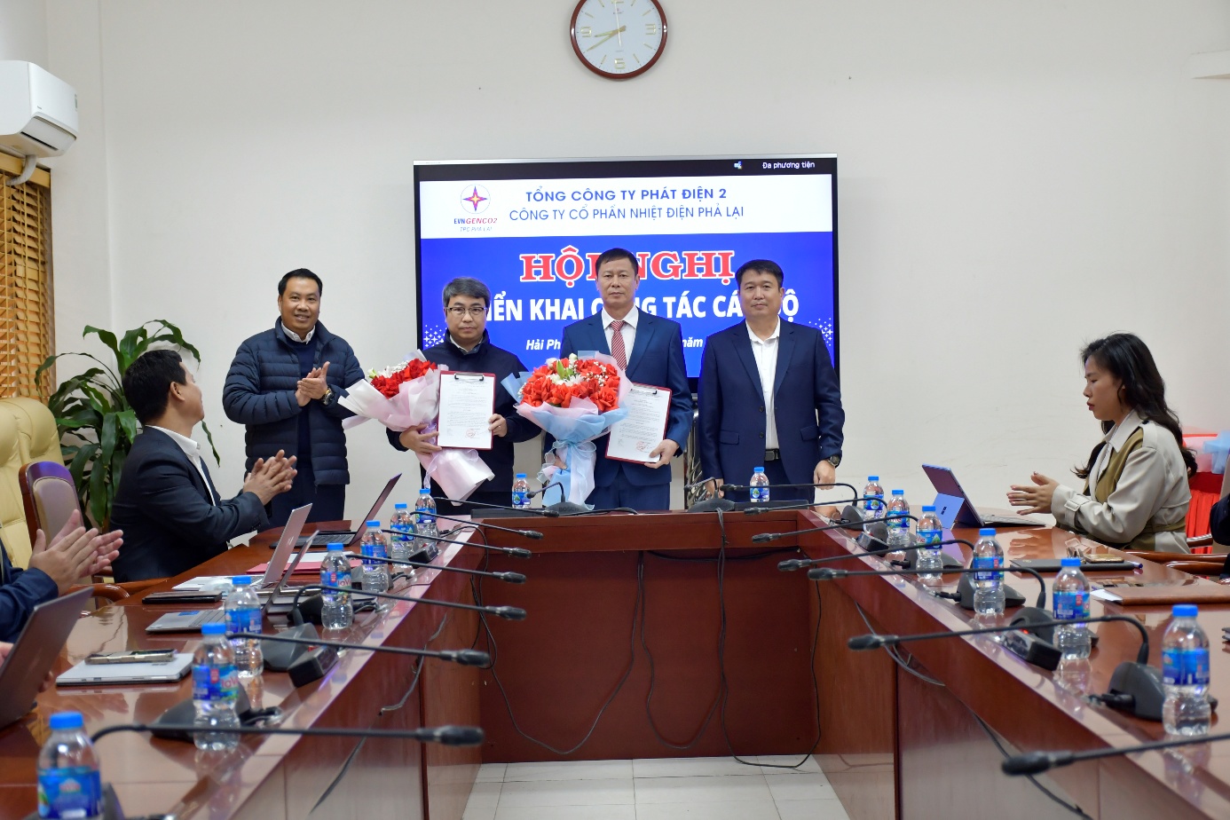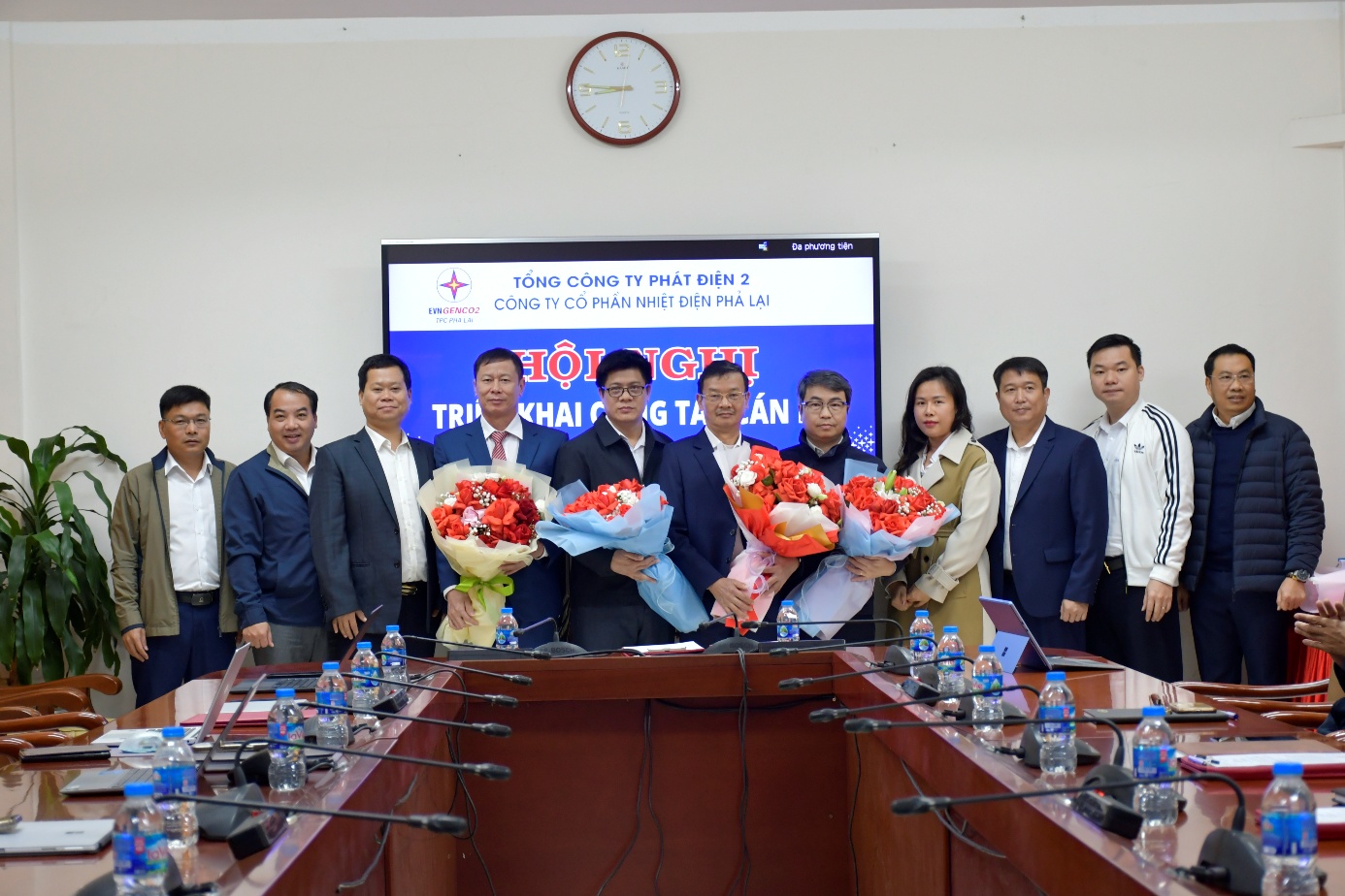 Lãnh đạo CTCP Nhiệt điện Phả Lại chụp ảnh với các cán bộ được điều động, bổ nhiệm giữ các vị trí lãnh đạo tại Trung tâm dịch vụ sửa chữa