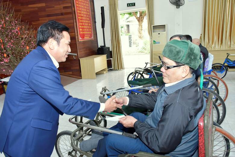 Ông Lê Văn Chính – Chủ tịch Công đoàn Công ty cùng đại diện các đơn vị, Đoàn Thanh niên, Nữ công Công ty trao quà cho các thương, bệnh binh và CBCNV tại Trung tâm điều dưỡng Thương binh Thuận Thành (Bắc Ninh)