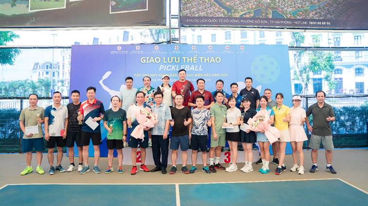 Các đơn vị chụp ảnh lưu niệm sau cuộc thi đấu giao lưu thể thao Pickleball
